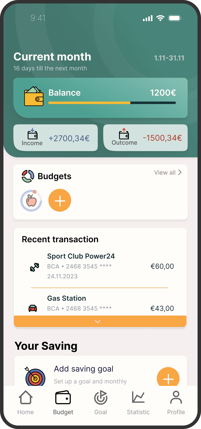 We wanted our design to communicate trustworthiness while still remaining active and different from monochrome banking apps, reminding the user that they can be more playful and flexible in terms of manipulating their budget and setting monthly goals.